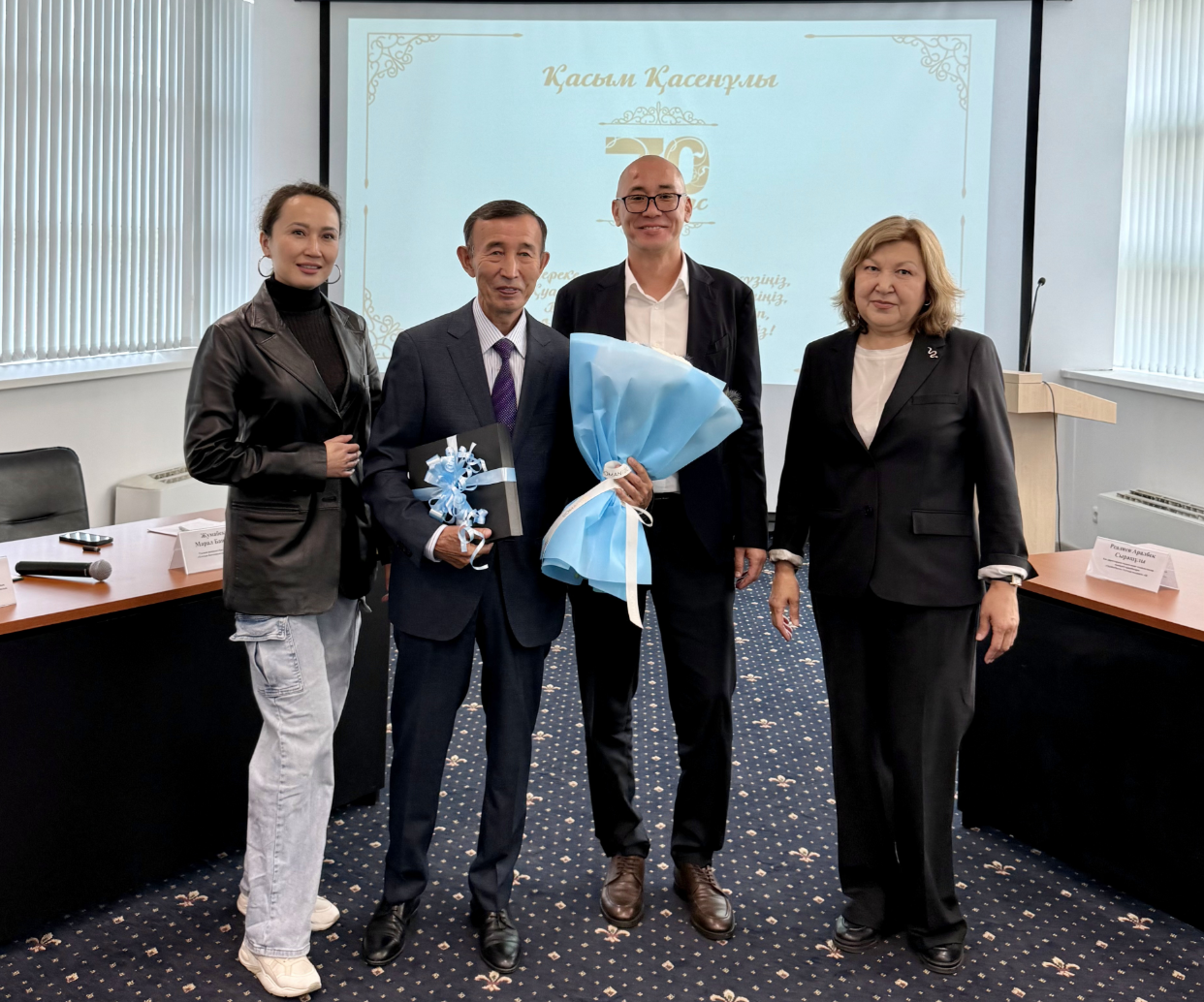 В день юбилея сотрудники НЦБ встретили профессора живым коридором, а официальная часть мероприятия прошла в актовом зале. В торжественной обстановке юбиляра поздравили коллеги, представители государственных органов, научных организаций и вузов.