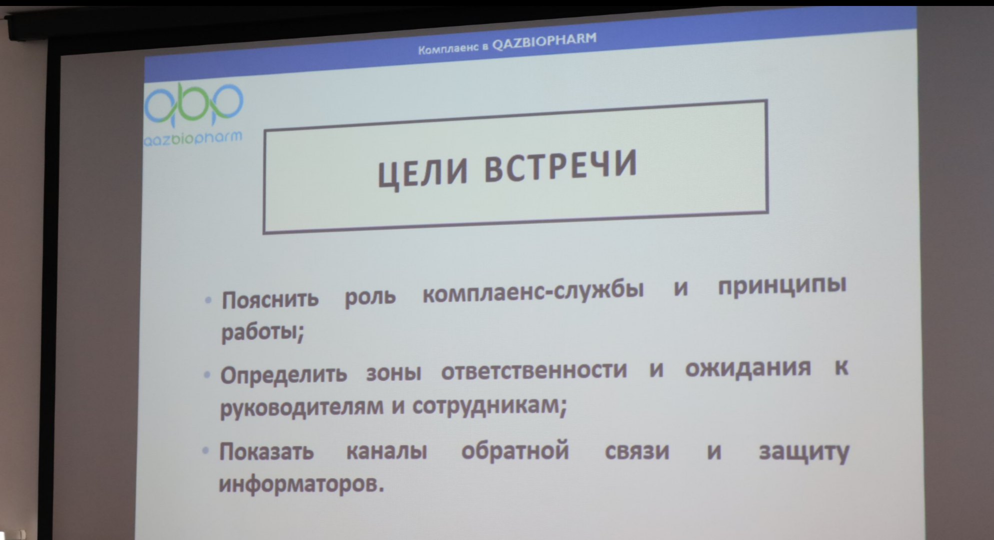 По итогам встречи было подчеркнуто, что комплаенс в QazBioPharm рассматривается не только как набор правил, но и как часть корпоративной культуры, в которую свой вклад вносит каждый сотрудник.