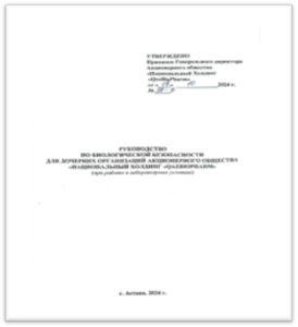 1) «Руководство по биологической безопасности для дочерних организаций Акционерного Общества «Национальный Холдинг «QazBioPharm» (при работе в лабораторных условиях