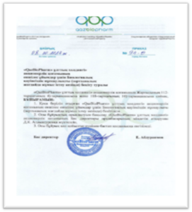 1) «Руководство по биологической безопасности для дочерних организаций Акционерного Общества «Национальный Холдинг «QazBioPharm» (при работе в лабораторных условиях